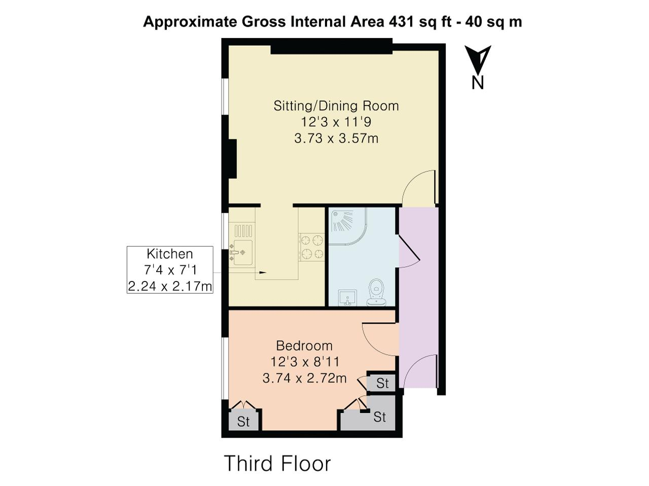 APPROXIMATELY 431 SQUARE FEET