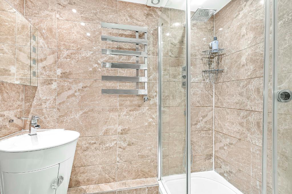 The shower room is again extremely modern and fully tiled with an over sized shower and plenty of room.