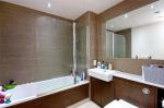 The bathroom features Villeroy and Boch chinaware, thermostatic chrome shower and bath.